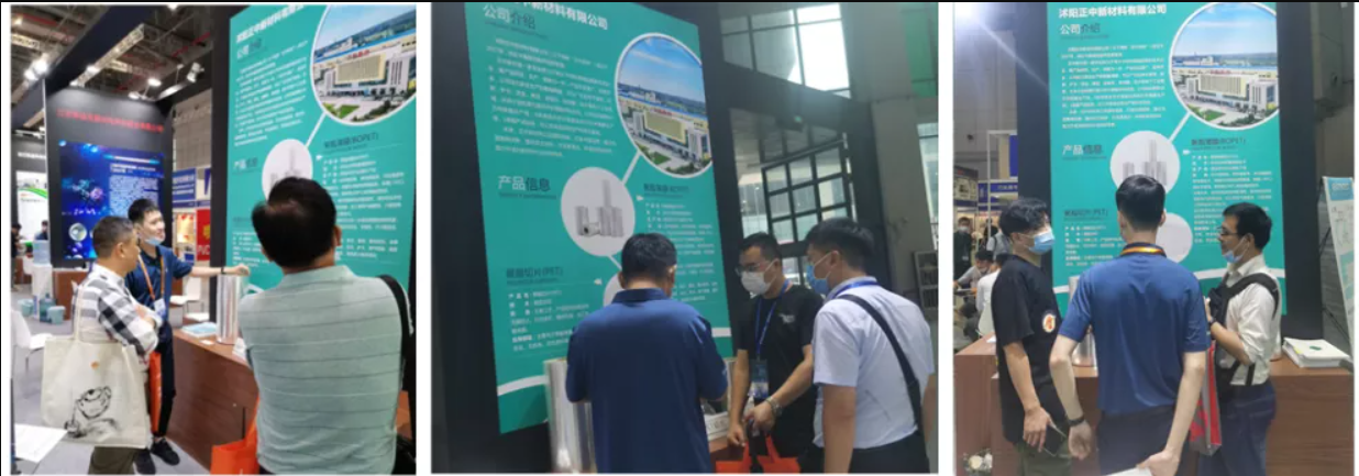 展会上,科泽新材展台的主营产品之一——聚酯薄膜,是印刷、复合、镀铝、激光防伪、金银卡纸、烫金转移、医药包装、手机屏幕、液晶显示器等领域中较为理想的基材。科泽新材作为一家专业生产薄膜的企业,所生产的产品性能卓越、品类齐全,吸引了众多客商的驻足观看与咨询交谈。