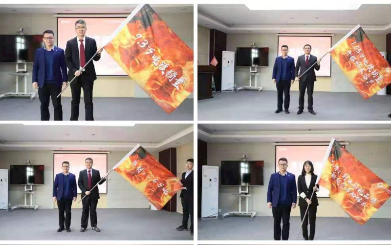 接着各业务片区及部门负责人逐一上台领取责任书和开门战旗,现场气氛热烈、目标笃定,更是鼓舞了每一位员工再接再厉、勇攀高峰的士气。