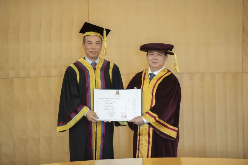 港中大(深圳)校长徐扬生教授为邓学勤先生颁授荣誉院士证书及纪念牌