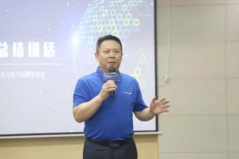 科泽新材董事长邓学勤做大会总结讲话。邓学勤讲到:科泽文化与品牌是让科泽“立”起来的底层,影响着我们的生命状态,用科泽强文化、强品牌营造科泽味道,从而改变每个人的个性特质。邓学勤强调:“文化和品牌是无价的宝藏,需要学会挖掘,细细琢磨、慢慢体会,从中吸取养分,成为自己的制胜武器。本次发布会是一场思想大餐,即将召开的股份公司创立大会为上市做准备,将一起为科泽的发展翻开全新的一页。未来,科泽的要求将越来越高,我们将以更加扎实、稳健的步伐,走向新的成功”。