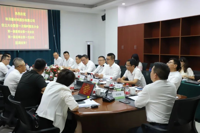 7月16日,科泽新材料股份有限公司创立大会暨第一次临时股东大会、股份公司第一届董事会第一次会议、第一届监事会第一次会议在江苏沭阳隆重召开。科泽新材料股份有限公司全体发起人股东及股东代表、董事候选人、监事候选人、高级管理人员候选人等出席了本次会议。大会由邓学勤先生主持,会议上,出席本次会议的全体股东审议并通过了关于科泽新材料股份有限公司筹办有关的15项议案,一致同意整体变更设立科泽新材料股份有限公司,并选举产生了股份公司第一届董事会成员、第一届监事会监事。